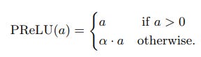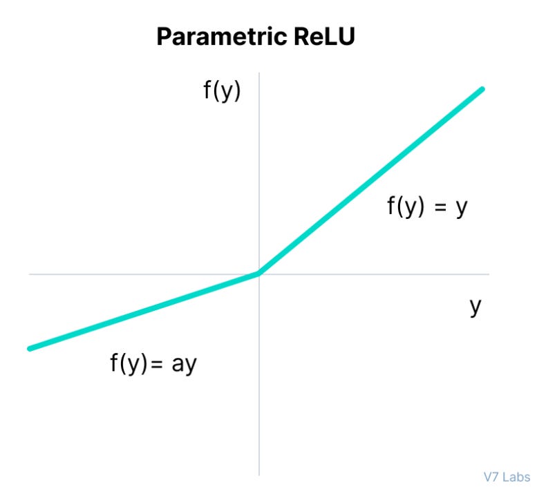 The mathematical function of PReLU is given as follows: